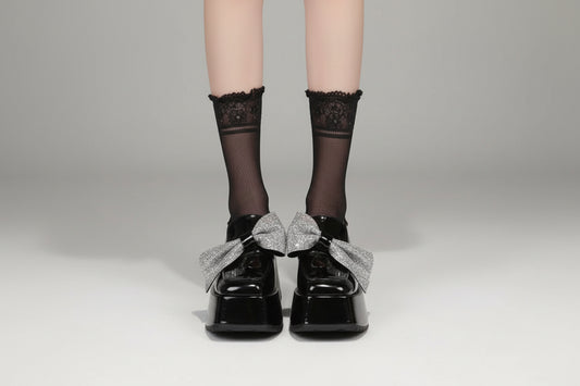 Regular price Rs. 5,600.00Regular priceUnit price / perSale price Rs. 5,600.002025 Spring New Silver Cross Strap Ballet Shoes Women Bowknot High Heels Niche Design Mary Jane Shoes SAM107