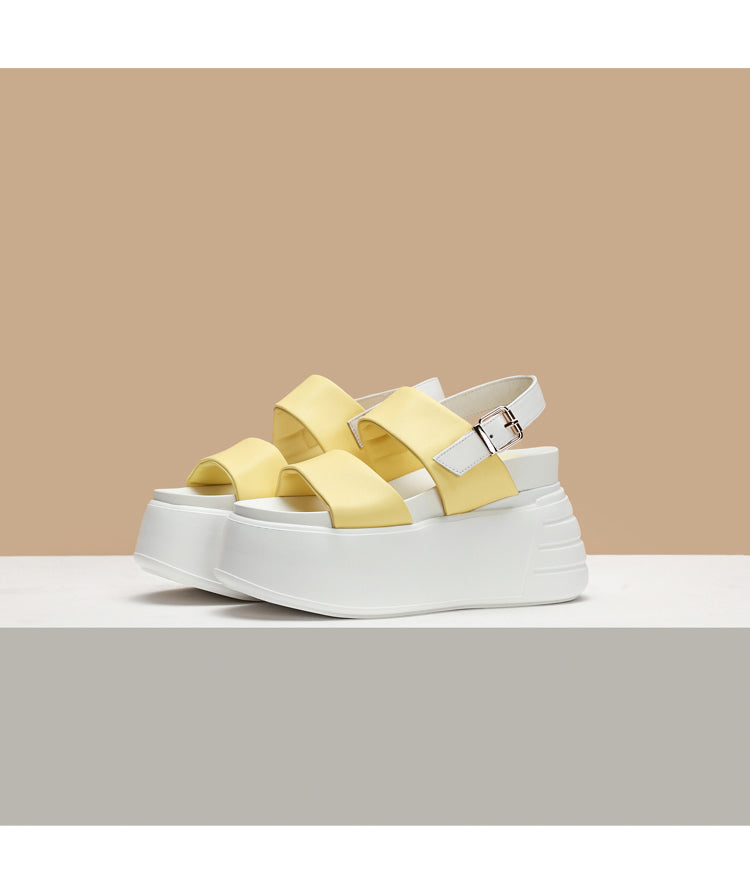 12 cms heel height Yellow and White Platform Sandals SAM308