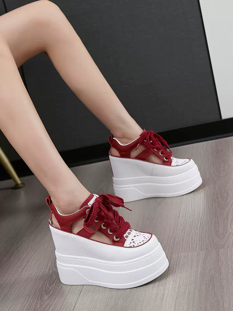 12cm women's shoes 2024 summer new fashion casual versatile thick bottom heightening hollow Roman sandals wedges platform heel
