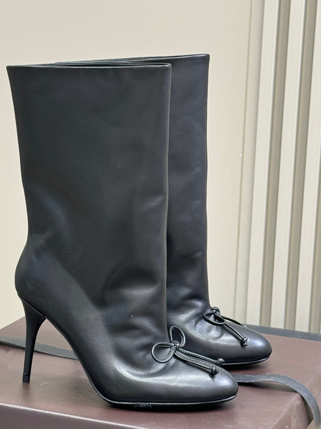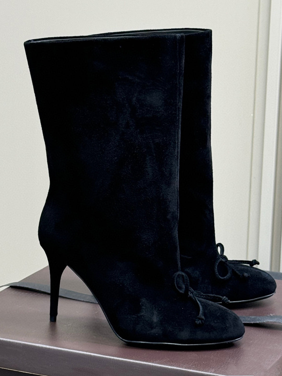 2025 Collection: Luxe Leather & Suede Mid-Calf Boots with Signature Bow Detail SAM764