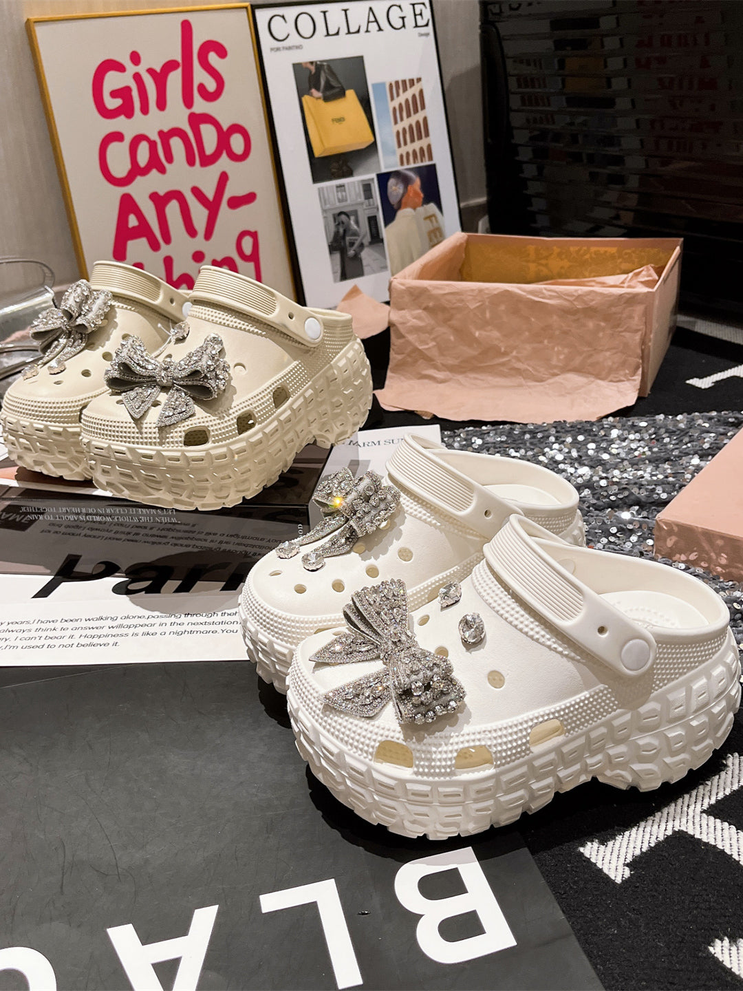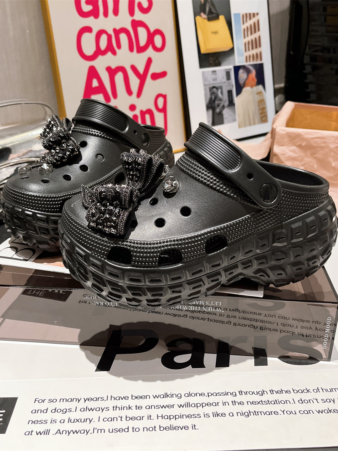 2025 new bow rhinestone thick-soled sponge cake crocs sandals beach hole shoes slippers women's shoes trendy shoes SAM622