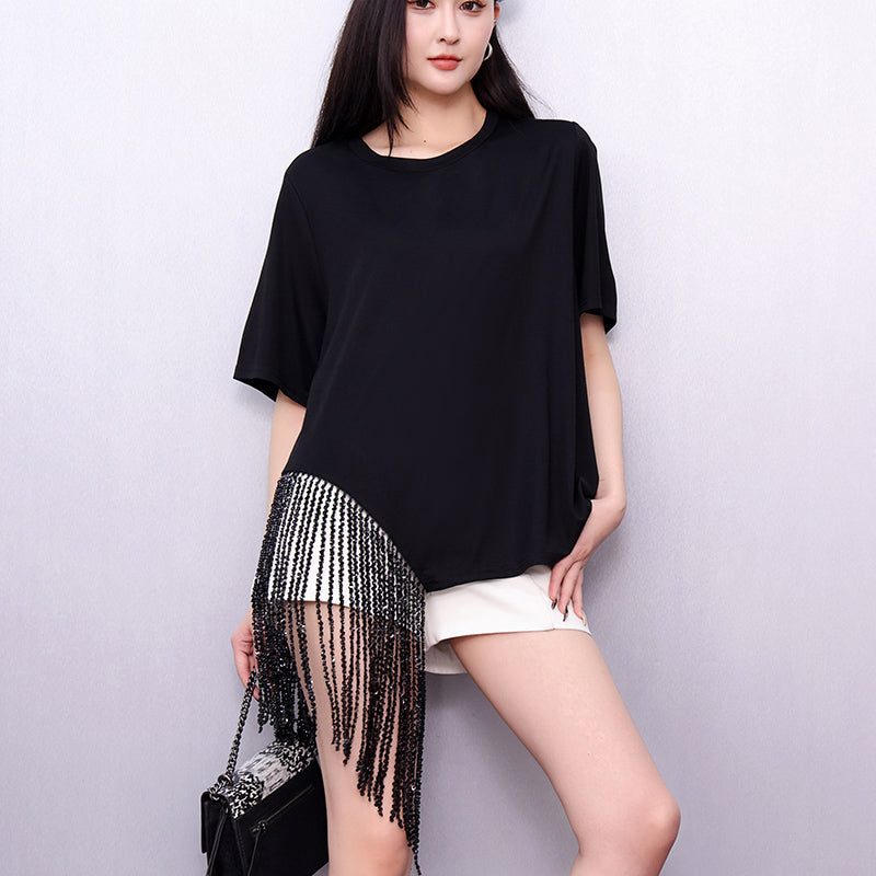 2025 summer new women's T-shirt loose large size tassel short-sleeved top fashionable comfortable and soft material SAM655
