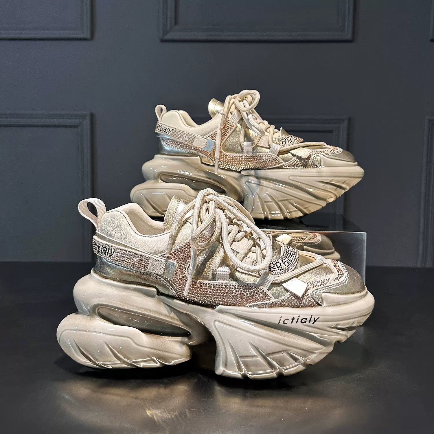 Genuine leather color matching style diamond sports dad shoes for women thick sole heightening jelly shoes SAM34
