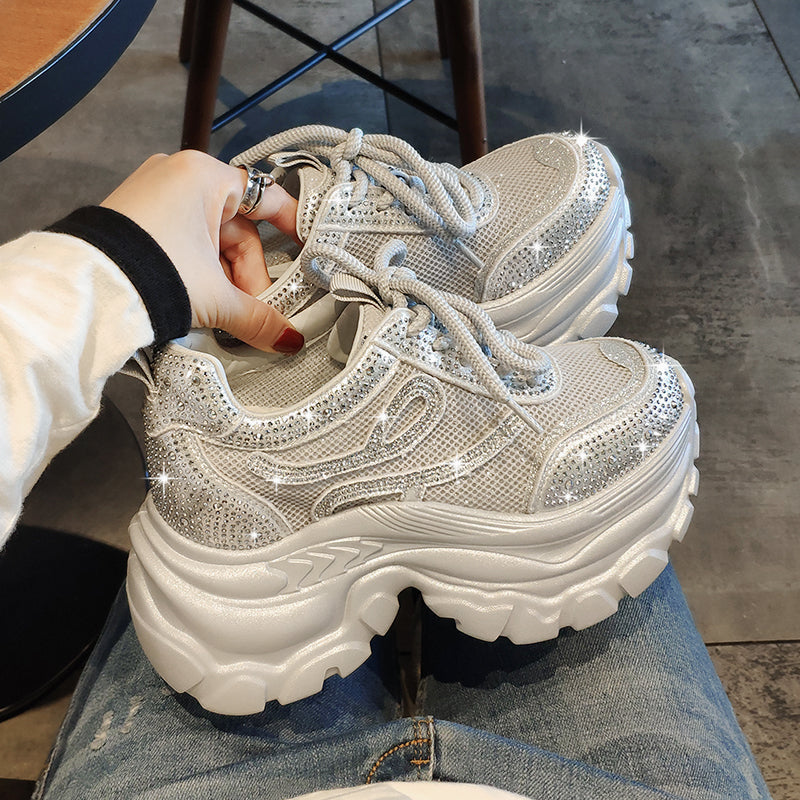 Height Increasing Shoes 9cms Dazzle Walk Sparkle Sneakers - Platform Bling Shoes SAM700