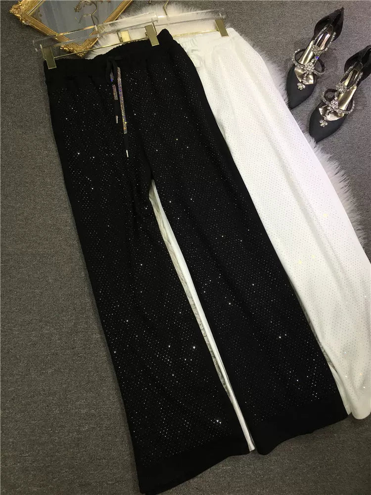 hot diamond wide-leg pants for women, slim black large size vertical pants, straight-leg pants