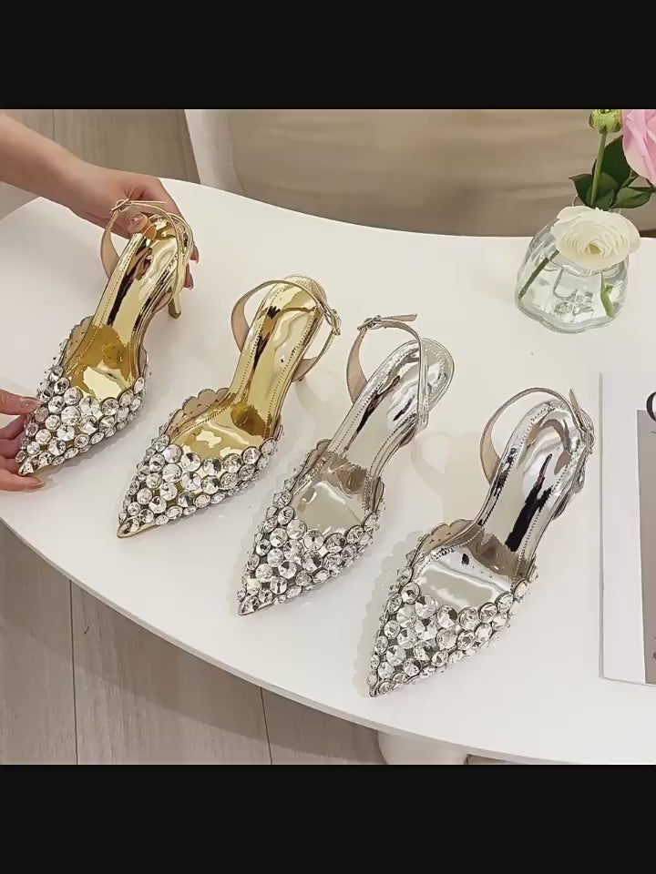 niche summer new elegant mature pointed rhinestone fashionable versatile women's shoes stiletto heel high heel sandals SAM102
