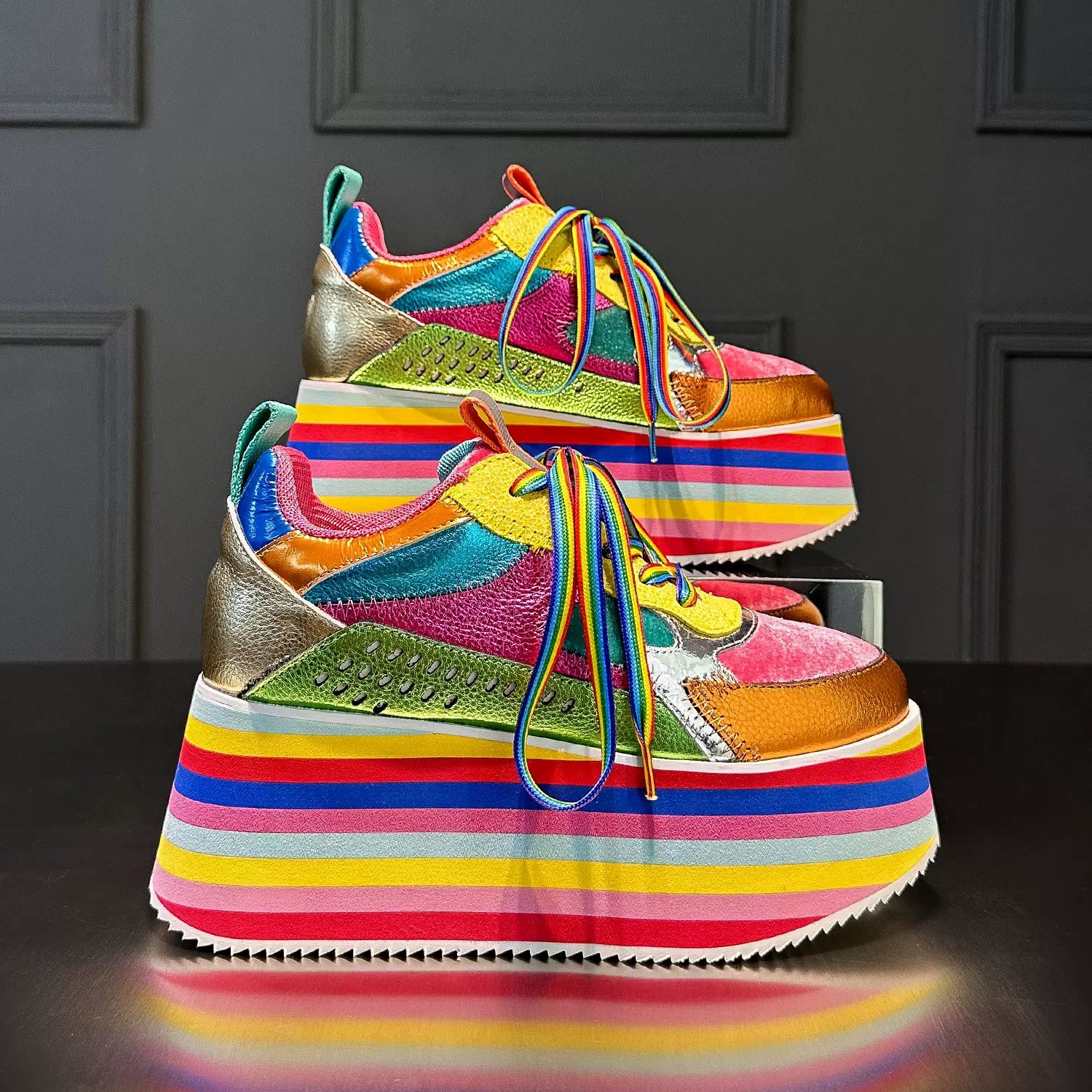 rainbow color thick bottom platform shoes women's spring and autumn new genuine leather heightening shoe SAM40