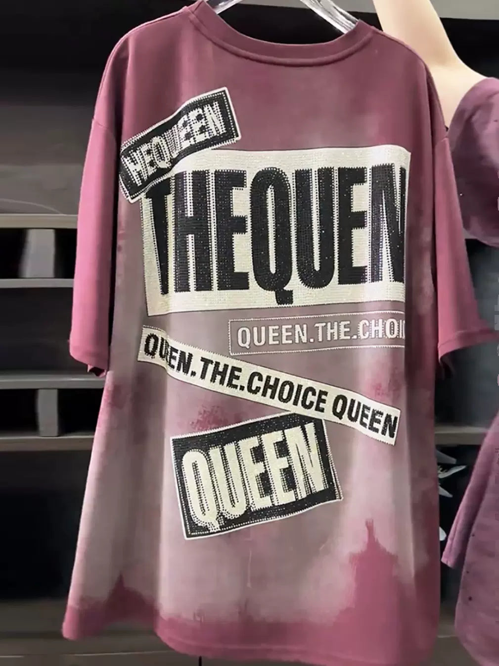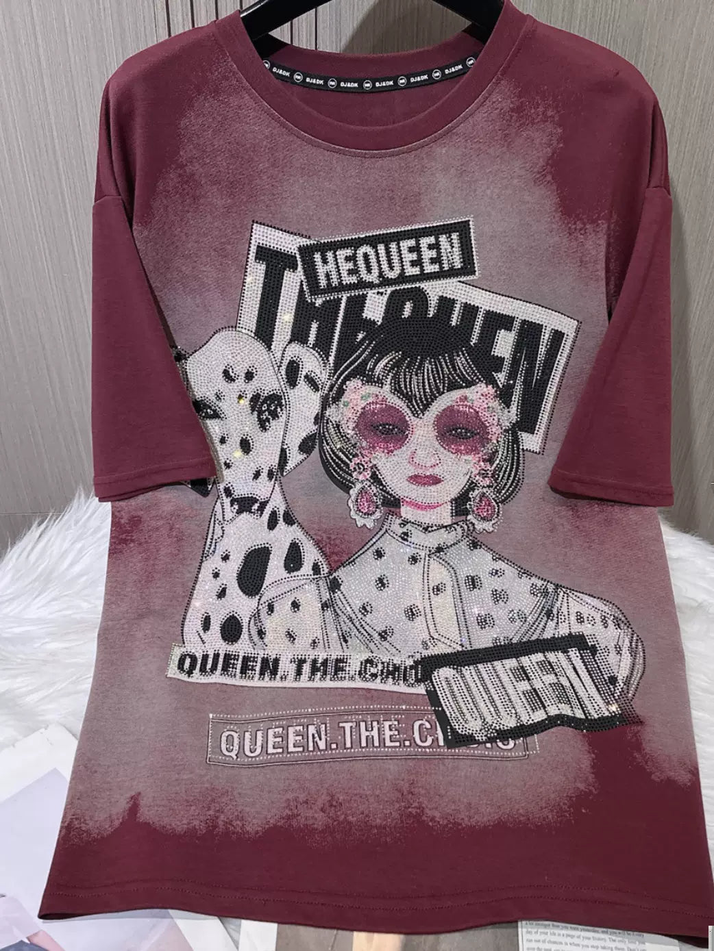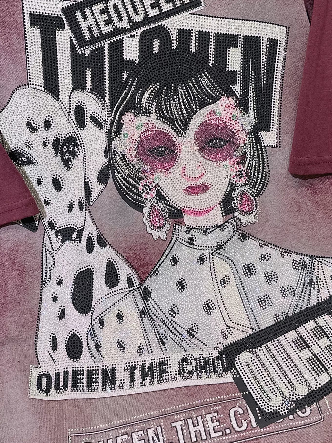 SFH heavy industry hot diamond girl Dalmatian short-sleeved T-shirt female loose medium-long casual fashioN