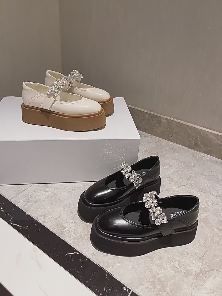 SFH Thick Soled Shallow Mouth Single Shoes for Women Summer New Breathable Fashion Round Toe Velcro Heightening WomEN SHOE
