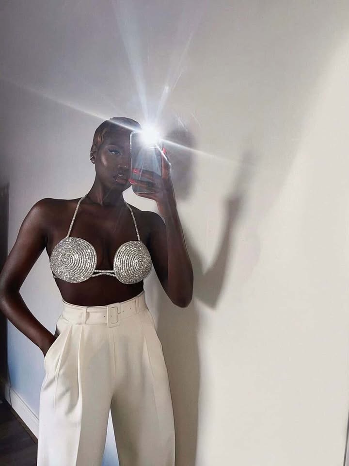 Illuminate your next getaway with the Aurora Crystal Bralette, a masterpiece of high-shine luxury. This statement piece features two meticulously hand-set crystal spirals that catch the light from every angle, creating a mesmerizing hypnotic effect. Designed with a delicate halter neckline and a minimal back-tie, it offers a daring yet sophisticated silhouette perfect for Mediterranean sunsets or exclusive rooftop events.