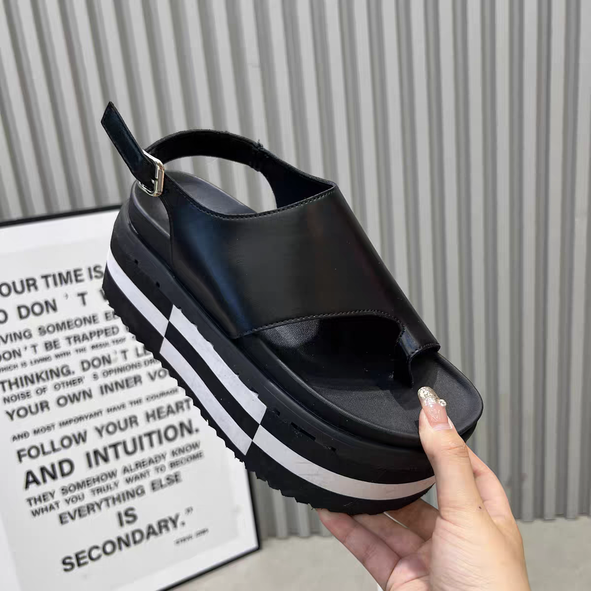 Waterproof heel heightening wedges flip flop sandals SAM180