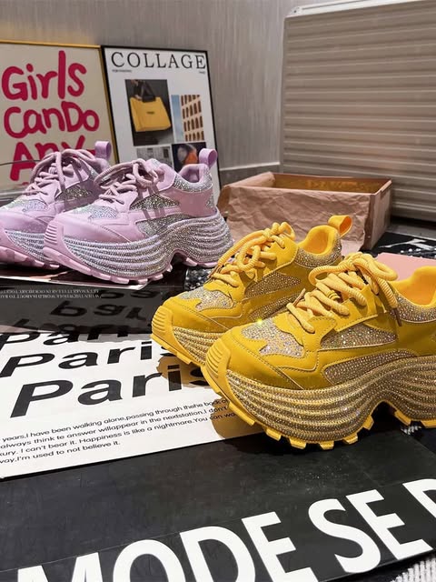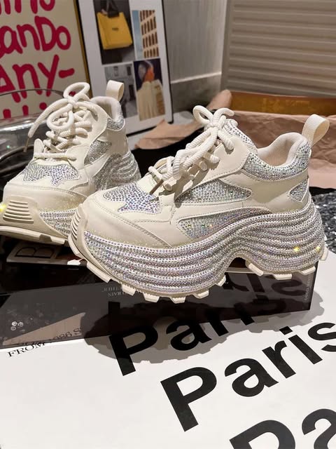 Women’s Chunky Platform Sneakers with Crystal Sole – Trendy Casual Shoes SAM1009