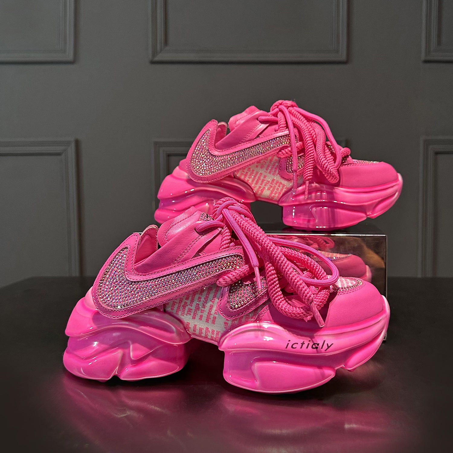 Women's Chunky Rhinestone Sneakers | Sparkle Platform partywear Shoes | Fashion Trainers | Casual Fashion Shoes high heel crystal shoes SAM500